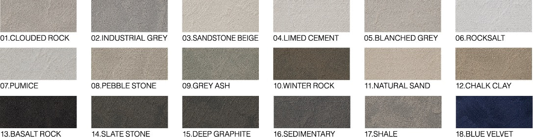 壁面に沿ってなめらかに塗装でき、柔らかく流動性のある仕上げです。塗装の仕上げによって作られた微な模様が、有機的な華やかさと色合いの明暗の機微を際立たせ、サーフェイスの中でも最も自然な仕上がりとなります。