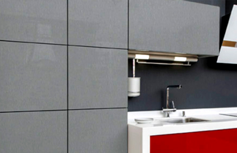 表面にアルミ・銅・ステンレス箔を施したメタリック化粧板。