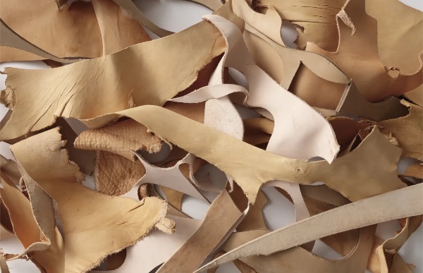 それらを粉砕し再形成することで、新しい再生レザーが生まれました。
