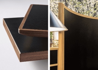 ベニヤ、合板、MDFなどの基材に貼るレザー表面材としても、加工しやすい仕様です。様々な家具のデザインに豊かな表情を与えます。